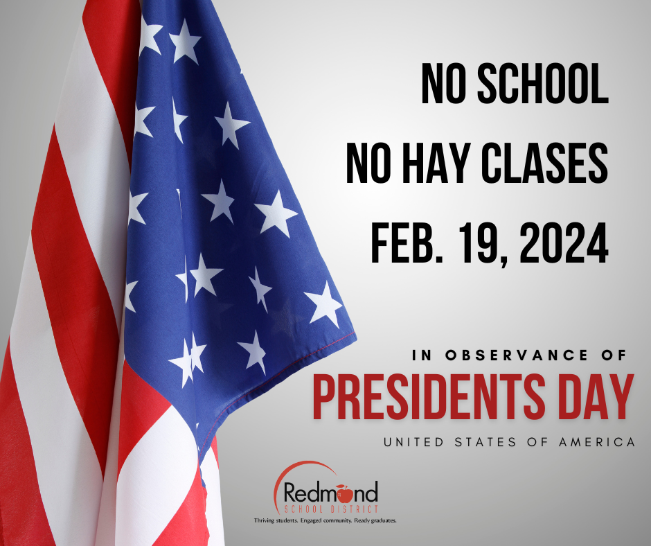 Reminder there is no school on Monday, February 19, 2024 in observance of Presidents' Day.